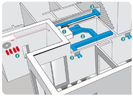 Es un sistema invisible y silencioso que hace que el aire circule por una red de conductos, ocultos en el falso techo, para salir por las rejillas de cada estancia que se quiere climatizar.