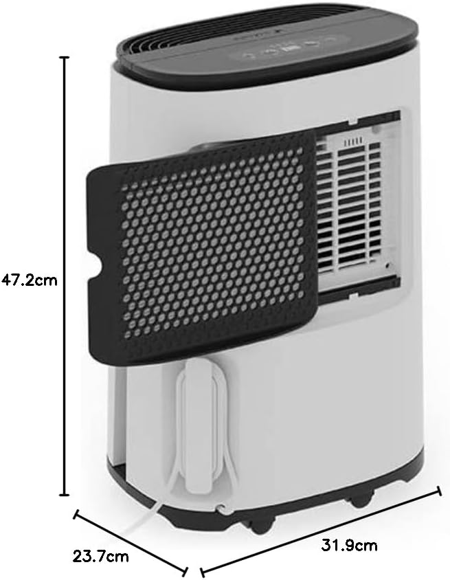 Flexibilidad de instalación: Gracias a sus ruedas giratorias y la opción de montaje en pared, se adapta a equipamiento profesional en espacios técnicos, lavanderías o estancias de trabajo abarcando hasta 2 habitaciones. Drenaje continuo y tanque de 4,8L permiten operación prolongada sin mantenimiento manual constante. Incluye opción para filtro de carbón activado para entornos industriales, estudios de grabación o zonas con compuestos volátiles.